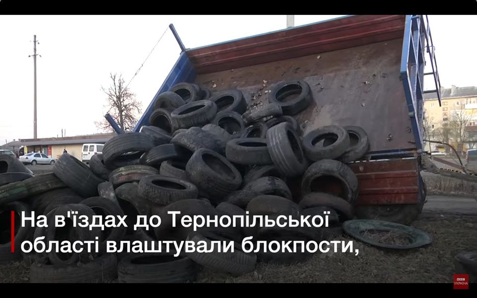 Импровизированный блокпост в Тернопольской области. Скриншот с видео