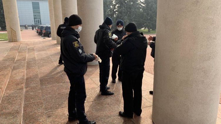 Полиция в аэропорту Харькова тоже надела защитные средства. Фото: Страна.ua