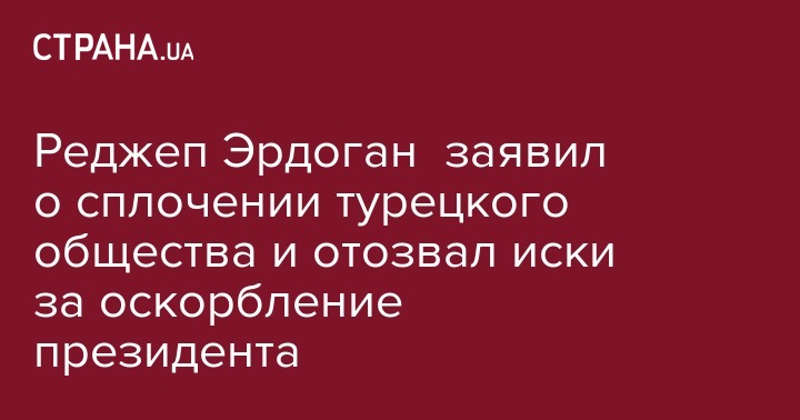 Реджеп Эрдоган заявил о сплочении турецкого общества и отозвал иски за оскорбление президента