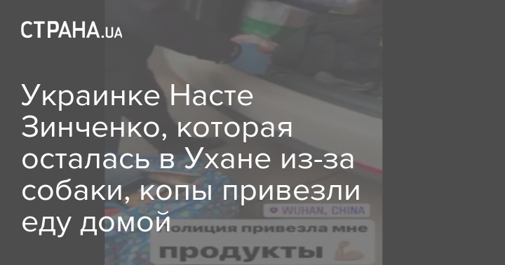 Украинке Анастасии Зинченко, которая отказалась эвакуироваться и осталась в Китае с собакой, полицейские привезли на дом продукты и защитные средства из-за запрета покидать помещение.
