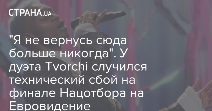 В финале Нацотбора на Евровидение-2020 произошел технический сбой, который повлиял на исполнение песни тернопольского дуэта Tvorchi, ставших триумфаторами второго полуфинала Нацотбора на Евровидение.