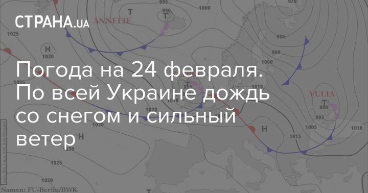 Погода на 24 февраля. По всей Украине дождь со снегом и сильный ветер