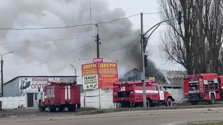 Утром во вторник, 25 февраля, под Киевом, в районе села Крюковщина, загорелся склад. На месте работают несколько пожарных машин и спасатели.