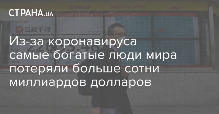 По оценке агентства Bloomberg, 500 самых богатых людей мира по рейтингу Bloomberg Billionaires Index 24 февраля потеряли в общей сложности 139 миллиардов долларов, это самые значительные однодневные потери с октября 2016 года, пишет "Радио Свобода".