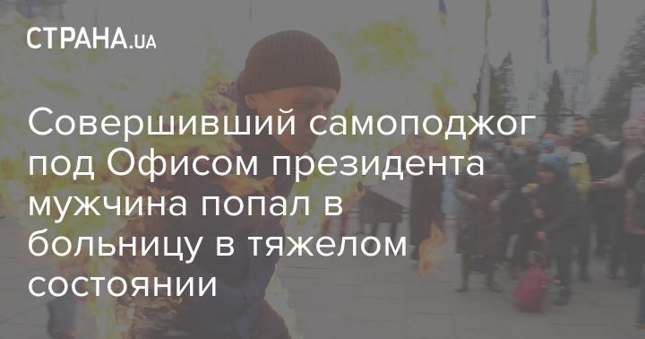 Мужчина, который вчера облил себя бензином и поджог по зданием Офиса президента в Киеве, был доставлен в больницу в тяжелом состоянии.