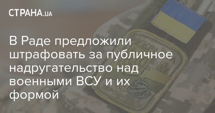 Законопроект предлагает установить, что публичное надругательство над военнослужащими ВСУ, военной формой одежды или знаками различия военнослужащих карается штрафом до 850 гривен или общественными работами на срок от 60 до 240 часов.