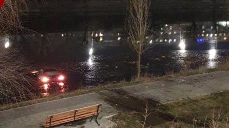 В Киеве машина с людьми упала в ледяной Днепр. Их жизни спас прохожий. Фото: Киев оперативный