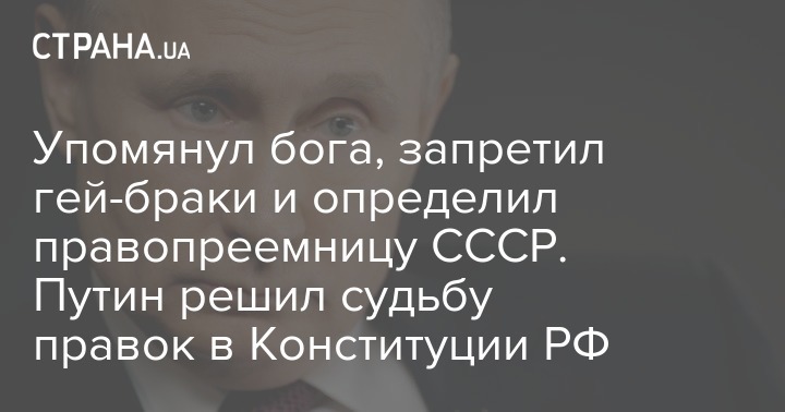 В частности, президент положительно решил судьбу предложенной ему поправки в Конституцию о вере в бога. Таким образом поправка предусматривает упоминание бога в Основном законе России.