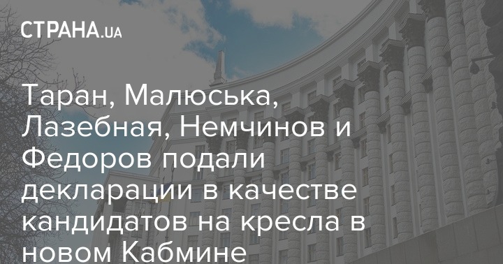 Таран, Малюська, Лазебная, Немчинов и Федоров подали декларации в качестве кандидатов на кресла в новом Кабмине