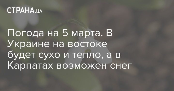 В четверг, 5 марта, в Украине ожидается различная погода: если на востоке страны будет ветрено, но тепло и сухо, то в Карпатах может выпасть мокрый снег.