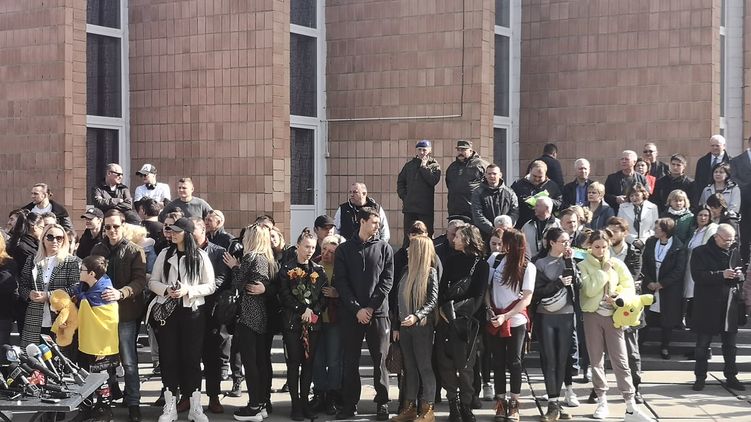 Тем временем местные жители выстроились напротив входа в санаторий. По их словам, они пришли к Зеленскому "просто посмотреть".