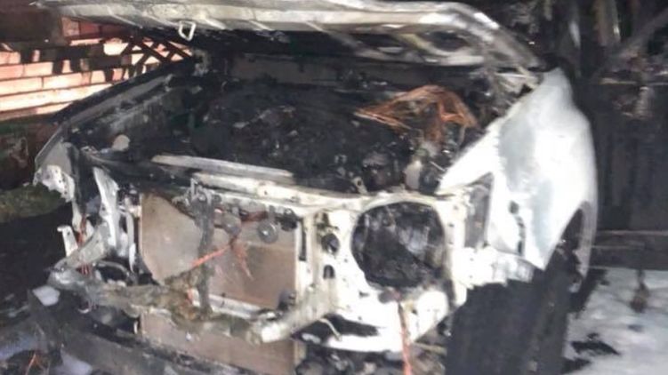 В Киеве сожгли авто полицейского. Фото: twitter.com/parnasparty