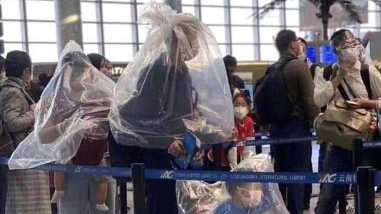 Пытаясь уберечься от коронавируса COVID-19, китайцы используют для защиты различные подручные средства, среди которых кульки, бутылки из-под воды и резиновые перчатки.