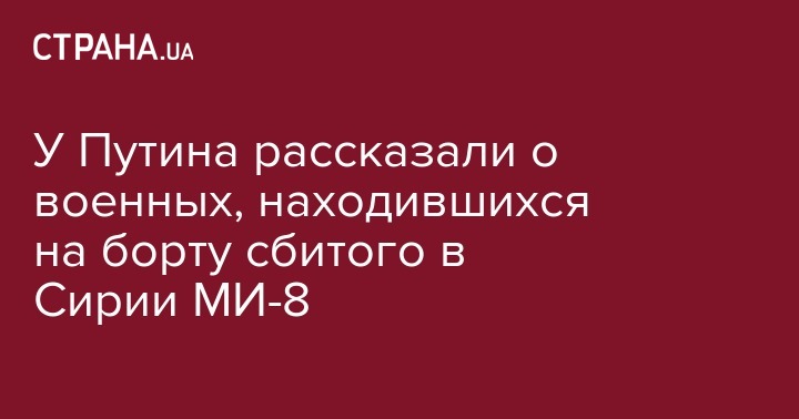 По словам пресс-секретаря президента РФ Дмитрия Пескова, вертолет был сбит с земли. "Те, кто были в вертолете, по информации, поступившей из министерства обороны, погибли. Погибли героически, потому что пытались увести машину с тем, чтобы минимизировать жертвы на земле", - сказал Песков.