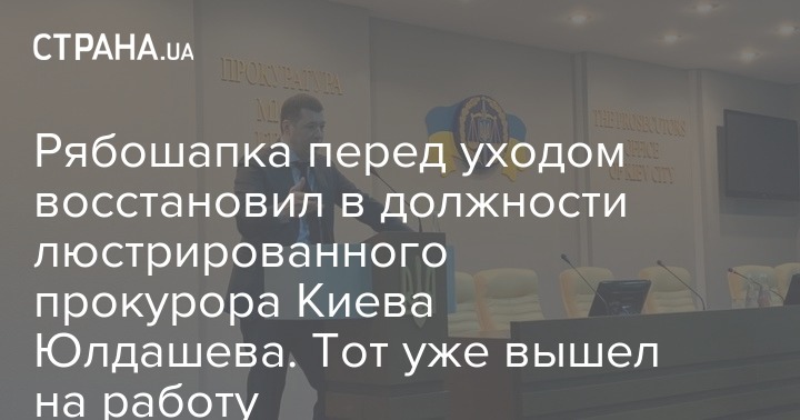 Прокурор Сергей Юлдашев, который был уволен в 2015 году из-за закона о люстрации, восстановлен по приказу экс-генпрокурора Руслана Рябошапки на должности главы прокуратуры Киева. Он уже приступил к выполнению обязанностей.