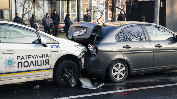 В Киеве полицейский автомобиль на полном ходу врезался в Hyundai, после чего пострадавшие устроили потасовку с правоохранителями.