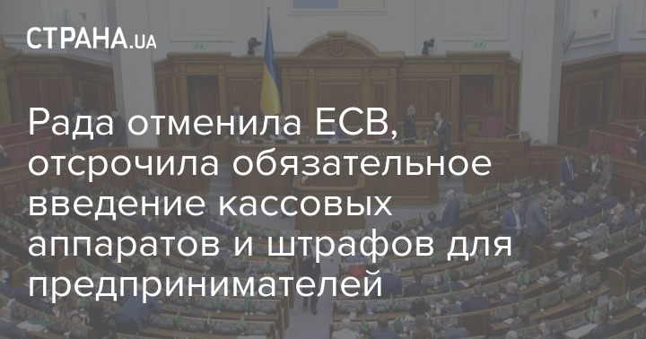 Рада отменила ЕСВ, отсрочила обязательное введение кассовых аппаратов и штрафов для предпринимателей