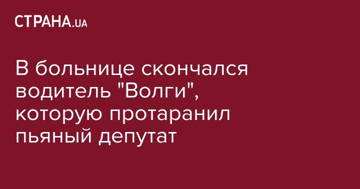 Водитель автомобиля "Волга", которую 29 июля протаранил депутат Макаровского райсовета Матвей Евсеенко на автомобиле Toyota, умер в реанимации 17-й больницы Киева. Его жена находится в критическом состоянии. Об этом пишет паблик dtp.kiev.ua на своей странице в Facebook.