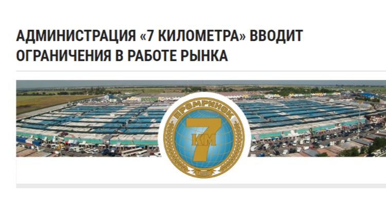 "В связи с обращением президента Украины и в соответствии с постановлением Кабинета Министров от 16 марта 2020 №215, администрация Промтоварного рынка "7 километр" вводит ограничения в работу рынка. Все службы, структурные подразделения и администрации торговых комплексов, осуществляющие работу с гражданами, в том числе бюро пропусков и договорной отдел прекращают прием посетителей. Исключение составят те службы, которые осуществляют оказание неотложной медицинской помощи и реагирование на чрезвычайные ситуации.