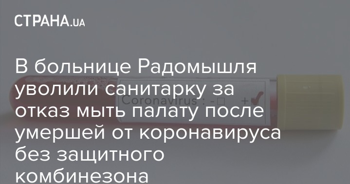 В Радомышле санитарка отказалась мыть палату, где находилась умершая от коронавируса женщина, без защитной одежды. Из-за этого руководство инфекционной больницы города уволило свою сотрудницу.