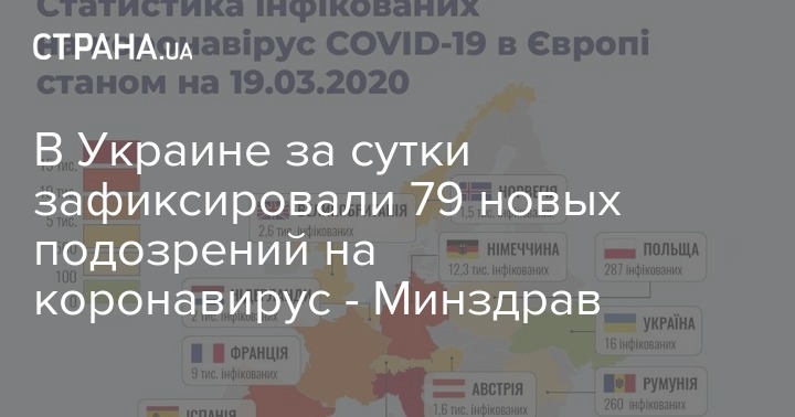 В Украине за среду, 18 марта, выявили 79 новых случаев заболеваний с подозрением на коронавирус, в лабораторию Центра общественного здоровья потупило 128 образцов, из них протестировали 35, два показали положительный результат