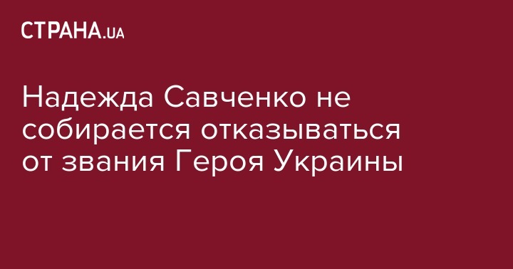Народный депутат Верховной Рады Украины Надежда Савченко ("Батькивщина") заявила о нежелании отказываться от ранее присужденного ей звания Героя Украины, сообщают Украинские новости.