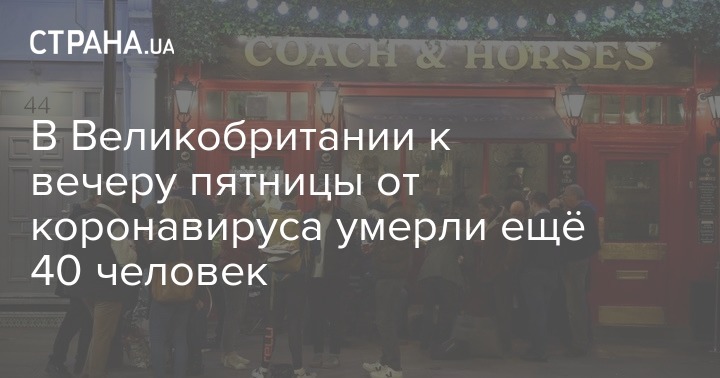 В Великобритании к вечеру пятницы от коронавируса умерли ещё 40 человек