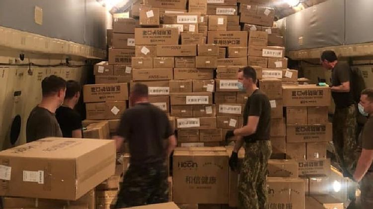 Появилось видео, как китайцы загружают в самолет маски и тесты для отправки в Украину