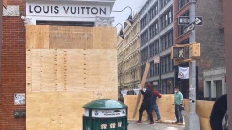 Магазин Louis Vuitton в Нью-Йорке забивают досками на время карантина. Фото: instagram