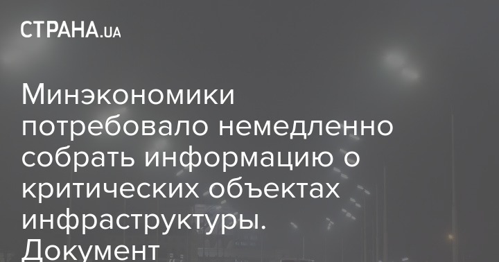 Министерство экономики Украины попросило другие министерства страны безотлагательно дать Минэкономики информацию про объекты критической инфраструктуры, которые обеспечивают жизнедеятельность населения.