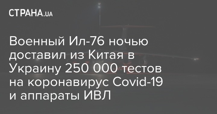 Сегодня ночью, 23 марта, украинский военный самолет Ил-76 доставил в Киев партию медицинского гуманитарного груза из Китая. В частности, на борту лайнера, приземлившегося в Борисполе, находятся 250 000 тестов на коронавирус Сovid-19.