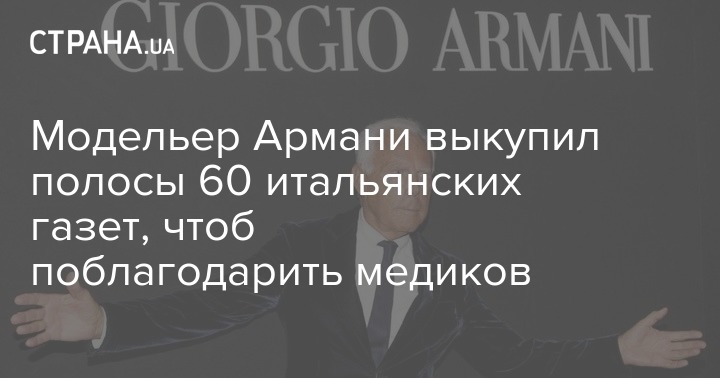 85-летний Джорджио Армани, итальянский модельер и предприниматель (основатель компании Armani) выкупил по одной полосе в 60 местных газетах, чтобы выразить благодарность всем медработникам, которые борются со вспышкой коронавируса.