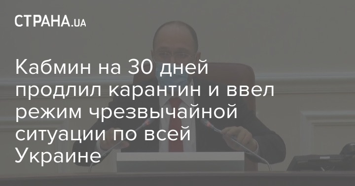 Кабинет министров решил на 30 дней ввести режим чрезвычайной ситуации по всей Украине из-за коронавируса. Он вводится до 24 апреля.