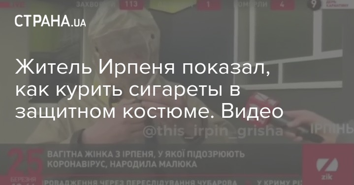 Житель Ирпеня показал, как курить сигареты в защитном костюме. Видео