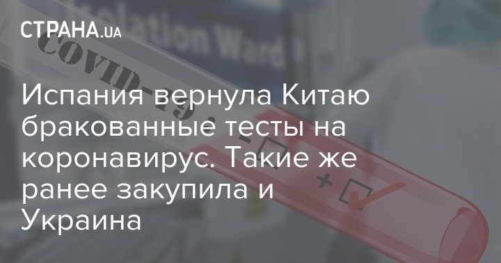 Испания вернула Китаю бракованные тесты на коронавирус. Такие же ранее закупила и Украина