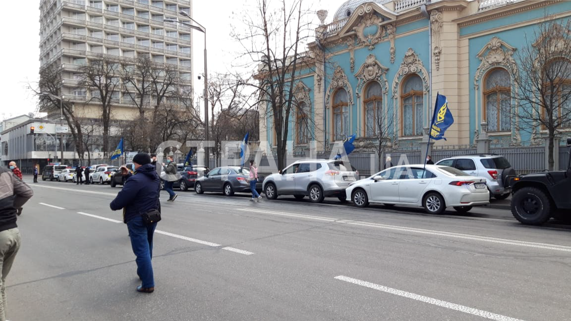 Под Верховную Раду 30 марта, когда нардепы проводят внеочередное заседание, приехали с протестом представители Национального Корпуса на девяти автомобилях в сопровождении полиции.