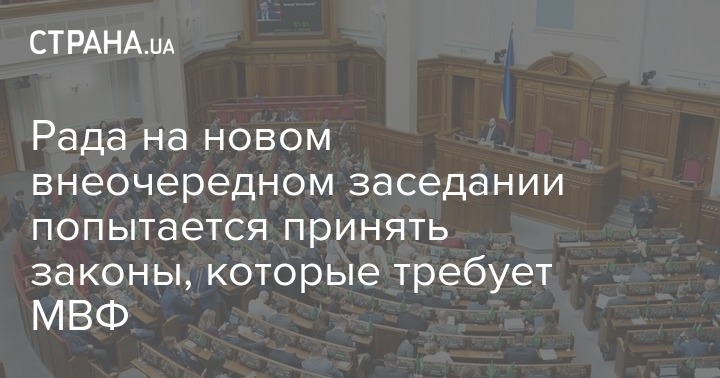 Народные депутаты Украины соберутся на новое внеочередное заседание парламента, которое запланировано на 16:00. Предполагается, что на нем будут приняты законопроекты, на принятии которых настаивает МВФ.