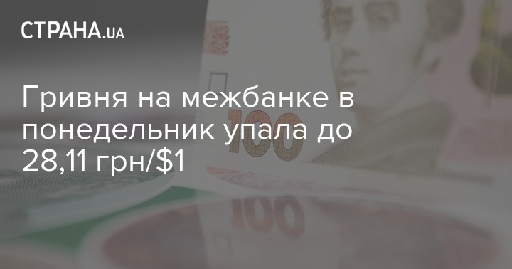 В понедельник, 30 марта, курс гривни на межбанке упал до 28,105 грн/$1 с 28,090 грн/$1 в предыдущий рабочий день.