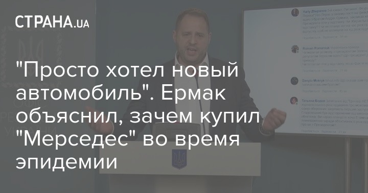Глава Офиса президента Андрей Ермак заявил, что давно хотел сменить автомобиль, поэтому он продал старый, купил себе Мерседес, и так вышло, что это совпало со всеми событиями, которые происходят в стране.