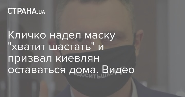 Мэр Киева Виталий Кличко, который многократно резко критиковал жителей столицы, не соблюдающих карантин и призывал киевлян "не шастать" по городу без необходимости, показал защитную маску с хештегом "хватит шастать".