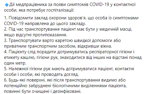 Также в ЦОЗ прописали действия медработника в случае госпитализации лица, имеющего симптомы COVID-19: