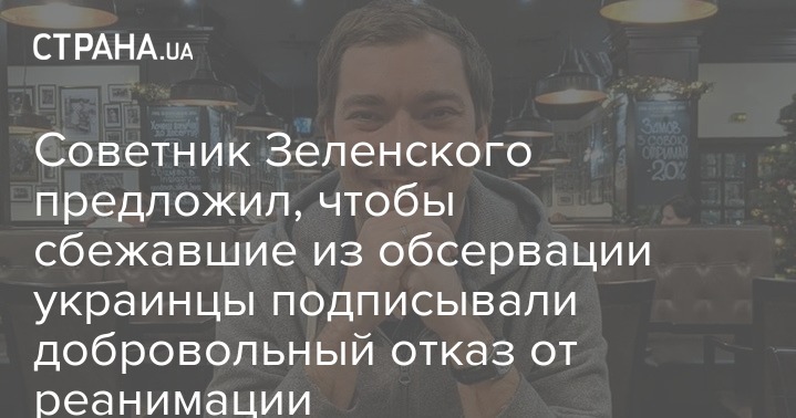 Глава представительства Университета Сингулярности в Украине Игорь Новиков, который является советником президента Украины Владимира Зеленского предложил вместо штрафов за нарушения карантинного режима в стране, а также за побег из-под обсервации нарушителям подписывать добровольный отказ от реанимации в случае ухудшения состояния.