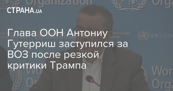 После того, как Дональд Трамп обрушился с резкой критикой на ВОЗ и ее главу Тедроса Аданома Гебреисуса, на защиту Всемирной организации здравохранения выступил генсек ООН Антониу Гутерриш.