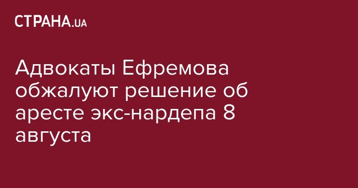 В этот же день защита экс-председателя фракции Партии регионов Александра Ефремова будет подавать апелляцию на решение суда о его аресте. 4 августа адвокаты арестованного Александра Ефремова подали заявление в Генпрокуратуру о давлении на суд во время избрания меры пресечения.
