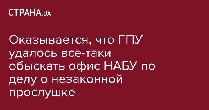 Сотрудники Генеральной прокуратуры проводили обыски по фактам незаконного прослушивания лица, не имеющего отношения к расследованию, в Национальном антикоррупционном бюро на протяжении целых 7 часов. Об этом сообщила спикер ведомства Светлана Олифира, передает УНН.