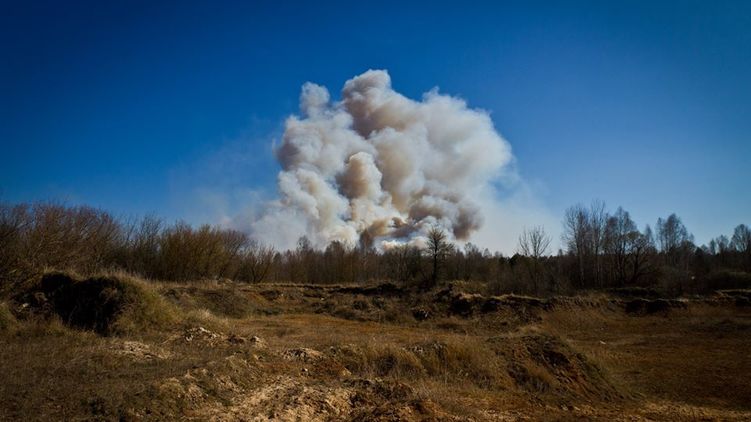Дым от пожарища в зоне отчуждения ЧАЭС. Фото: Facebook/ denis.vishnevskiy