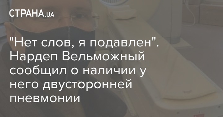 "Нет слов, я подавлен". Нардеп Вельможный сообщил о наличии у него двусторонней пневмонии