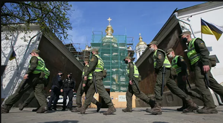 Оцепление из правоохранителей под стенами Киево-Печерской лавры. Фото: РИА Новости