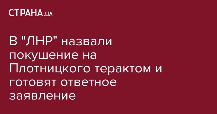 В самопровозглашенной "Луганской народной республике" расценили как теракт взрыв автомобиля, в котором находился глава боевиков Игорь Плотницкий. Об этом сообщает "Интерфакс".