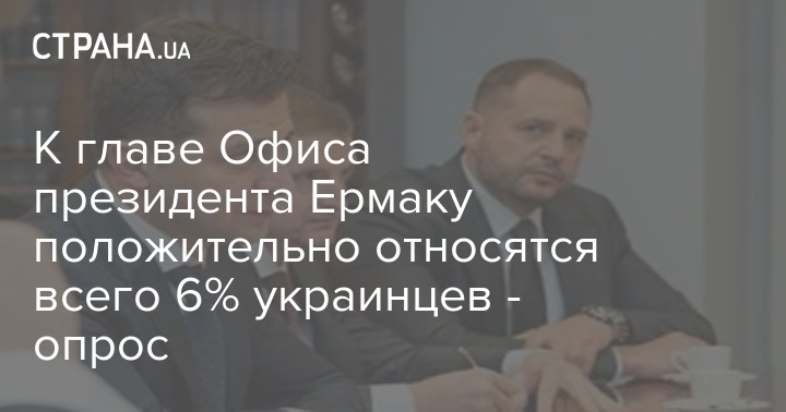 К главе Офиса президента Украины Андрею Ермаку положительно относятся 6% жителей страны. Негативно его воспринимают 42%.